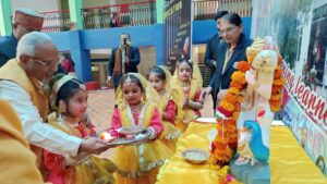 विद्यालय के गायक समूह ने द्वारा प्रस्तुत सरस्वती वंदना ने वातावरण को पवित्र और सात्विक बना दिया। प्री-प्राइमरी के नन्हे विद्यार्थी पीले परिधानों में बसंत के फूलों की भांति खिल उठे और पूरे परिसर में उल्लास की छटा बिखेर दी। सांस्कृतिक कार्यक्रमों की श्रृंखला में विद्यार्थियों ने मनमोहक प्रस्तुतियां दीं। कक्षा ग्यारह के अंशुमन ने बसंत पंचमी के महत्व पर प्रकाश डाला। कक्षा एक, दो तथा छह से आठ की छात्राओं ने विविध नृत्य प्रस्तुत कर दर्शकों को मंत्रमुग्ध कर दिया, वहीं कक्षा तीन व चार के बच्चों की कविताओं ने बसंत की मधुर ध्वनि को स्वर प्रदान किया।